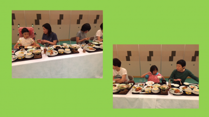 楽しい夕食の時間です。今日も1日活動してみんな腹ペコです。