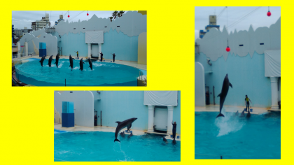 須磨海浜水族園では,素敵なイルカライブをみんなで見て感動しました。大水槽の魚たち,可愛いペンギンなど見て回り,今から和楽園で昼食です‼