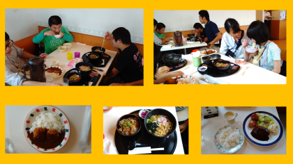 お昼のメニューは,カツカレー,牛丼&うどん,ハンバーグ&唐揚げです。自分の食べたいものを注文しました。