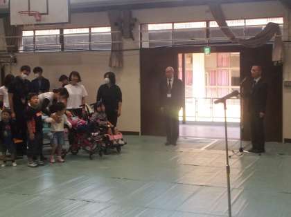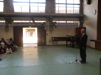 最初にみんなで元気よく校歌を歌いました。