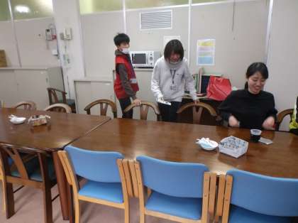 午前中,中学部の役割活動A・Bユニットの生徒たちがランチルームで「きっさ絆」を開きました。