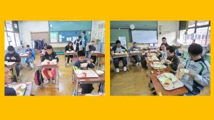 各教室では,祝い献立を前に嬉しそうな表情で美味しく食べているクラスや,卒業を前に少し寂しさも感じながら食べているクラスなどさまざまな様子が見られていました。