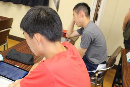 6/26(水)午後 京都府警察サイバー犯罪対策課より4名の講師の方にお越し頂き,本校会議室にて「ネットトラブル対策講座」が行われました。参加した生徒一人一人がタブレット端末を使用し,ネットトラブルを疑似体験しながらその対処法を学びました。どのような写真をアップすることがストーカー被害に繋がるのか等,写真を一つ一つチェックしながら確認していきました。生徒たちからは「こんな写真もダメなのか。怖いな。」と声もでる等,SNS被害の怖さを知ることができました。