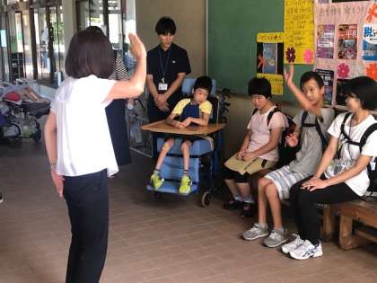 出発式後、バスに乗り込み、小学部の児童、教職員に見送られる中、元気いっぱい出発しました。