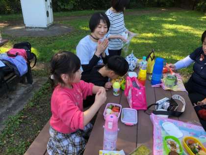 たくさん身体を動かした後は,お待ちかねのお弁当の時間です。みんなで揃って「いただきます」をしました。朝からお弁当の用意をしてくださった保護者のみなさま,ありがとうございます。
