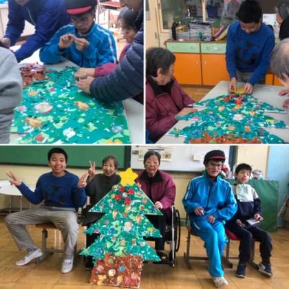 前半は2グループに分かれてクリスマスツリー作りと卓球バレーを,後半は山科苑 苑長様の演奏による音楽交流会「ウィンターコンサートin東」を行いました。