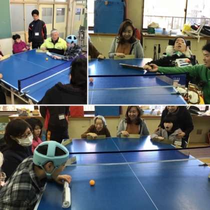 卓球バレーでは,ボールの動きをみんなで追いながら,みんな笑顔で楽しくラリーが続いていきました。