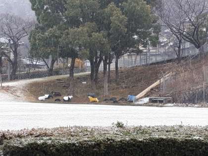 3連休が明け,心配されました積雪ですが,グランドは御覧の通り薄っすら雪化粧です。交通渋滞には至らず,スクールバスは通常通り到着しております。自主通学生の皆さんも遅延もなく登校でき安心しました。今年の冬は「雪」の心配が続きそうです。保護者の皆様も送迎等で大変な中ですが,引き続きよろしくお願いいたします。