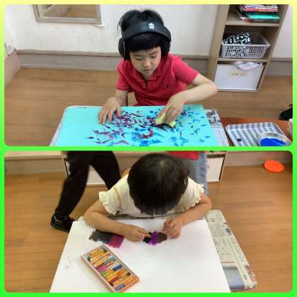 夢中で画用紙に向かっていました!