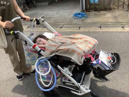 今日は,新しいバギーでの初めてのお散歩。