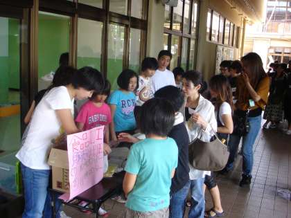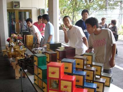 小学部1年生は初めての土曜参観日です。お父さんお母さんの笑顔に囲まれ,いつもと違った雰囲気に目をくるくるさせながら一所懸命に学習に取り組みました。エントランスでは高等部のワーク製品販売がおこなわれ,「木工製品いかがですか〜」「いらっしゃいませ〜」と威勢の良い声でお客様にアピール。なかには行列ができる店舗もあり,日頃からこつこつと取り組んでいる学習の成果をご覧いただけて,生徒の意欲も高まったことと思います。