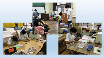中学部は本日「ワークスタディ」です。染織デザイン班の生徒は,つまみ細工の作成をしていました。