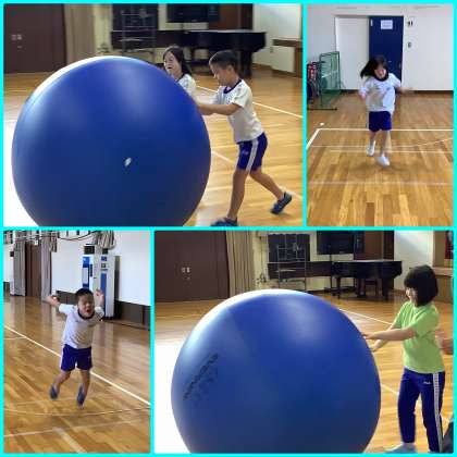 徒競走,なわとび,大玉ころがしの練習をしました。