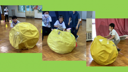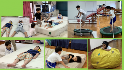 バイキンマンを倒した後は,マットの上やトランポリンなど,友達と一緒に好きなことをして遊びました!