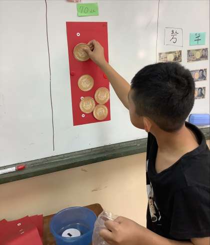 3枚目は,買った商品の代金を提示された金額と同じになるようにホワイトボードに貼っています。
