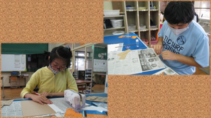 教室では,販売の時に商品を入れる紙袋を,分担しながら作りました。別の教室では,フェルトボールや紙粘土で成形したものを成果に見立てて,袋詰めの練習をしていました。