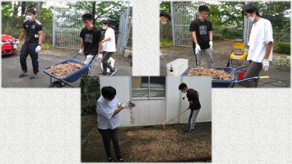 芝刈り機でグラウンドをメンテナンスしてくれたり,草刈り機でグラウンド周りの雑草を刈ったり,敷地内に落ちている枝をウッドチップにしたりしていました。