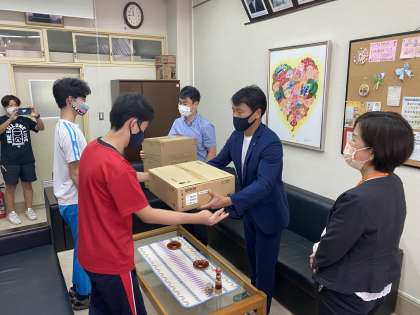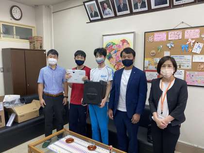 今日は,在日本朝鮮京都府青年商工会様より,東総合にプロジェクターとデジタルワイヤレスアンプシステムを寄贈していただきました。中学部の生徒が受け取りとお礼の言葉を伝えてくれました。これから,体育祭や学習発表会など,学校行事で大切に使わせていただきます。在日本朝鮮京都府青年商工会様へは京都市教育委員会より感謝状が授与されました。ありがとうございました。