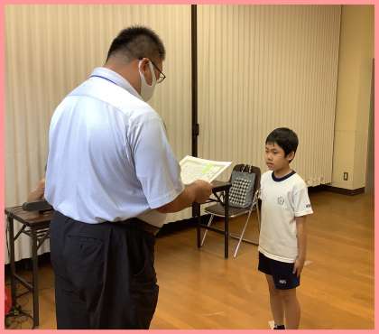 式の後,全校集会を行いました。小学部の硬筆書写で入賞した児童が表彰されました。賞状をうれしそうに受け取る姿が輝いていました!