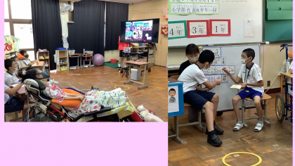 今年度は,各学年ごとに場所と時間を分けての開催となりましたが,各学年をリモートでつないで行いました。全学年を3チームに分けての玉入れでは,同じチームの学年を応援し,優勝を目指しました。