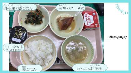 今日の団子汁の団子には,サクサクした食感の野菜が入っています。わかるかな?