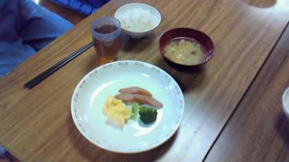 写真は今朝の朝食風景です。ご飯と野菜たっぷりのお味噌汁,少し眠そうに目をこすっている生徒もいますが,みんなそろっていただきます。