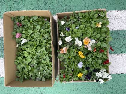 株式会社トヨペットステーション山科のスズキアリーナ伏見桃山店様よりパンジーとビオラを50ほどいただきました。