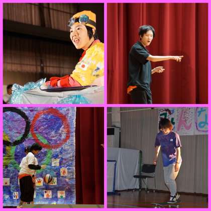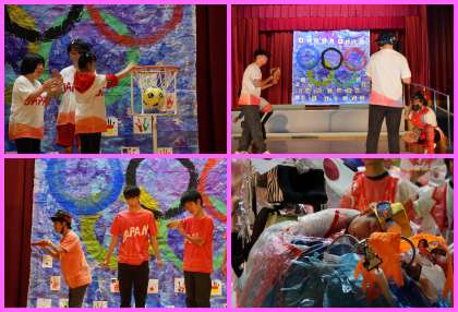 2年生は「オリンピックダイジェスト」をテーマに,笑いあり感動ありの発表となりました。漫才からスタートし,競泳,バスケットボール,スケートボード,陸上,ソフトボールのダイジェストを臨場感たっぷりの実況と共に届けてくれました。最後は,全員で息の合ったダンスを披露し,発表を締めくくりました。