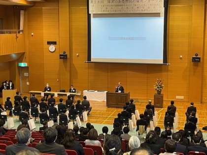 第一部では,総合支援学校高等部卒業時に企業就労し,勤続6年目と10年目にあたる卒業生の表彰と支えていただいた企業様へ感謝状の贈呈式が行われました。