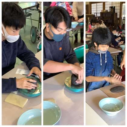 ワークスタディの陶芸班で普段頑張っている生徒もいつもと勝手が違い苦労している姿もありました。