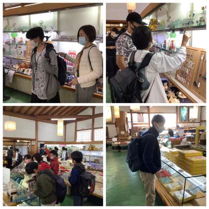 陶芸教室の後は、お土産を買いました。たくさんあるお土産に迷っている生徒もいました。