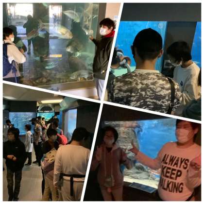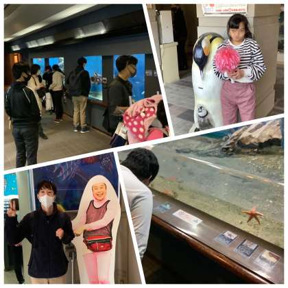 魚の写真を撮ったり説明と水槽内を見比べたりしていました。