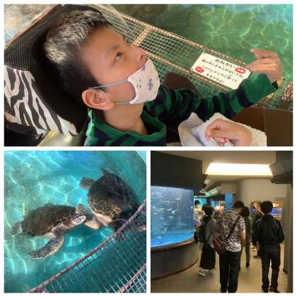 渋川マリン水族館では、みんなでウミガメにエサをあげて大盛り上がりでした!その他にもたくさんの魚や海洋生物を見て、興味津々でした。