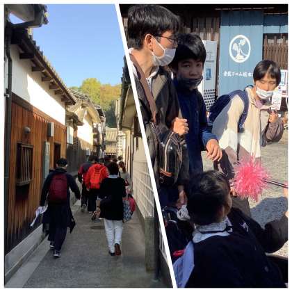 美観地区のマップを見ながら、グループごとに色々なお店を巡りました。景観もきれいで、みんな満喫していました。