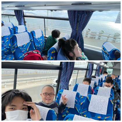 淡路サービスエリアでトイレ休憩をし、観光バスは次の目的地に向かって進んでいます。