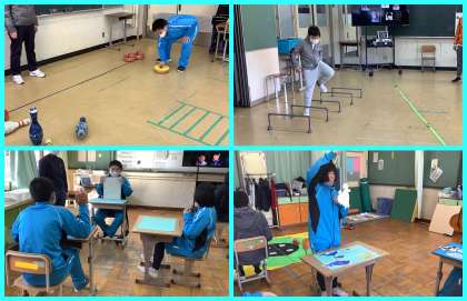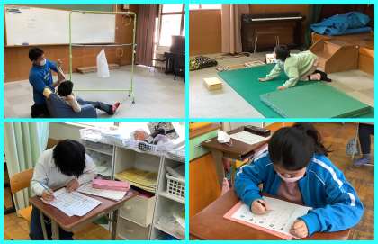 iPadを使ったり,身体を動かしたり,ゲームをしたりする中で,課題に取り組んでいます