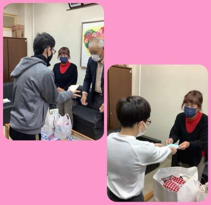 大塚老人クラブ連合会の方に来校いただき,雑巾やバスタオル,石鹸,洗剤などを寄付していただきました。