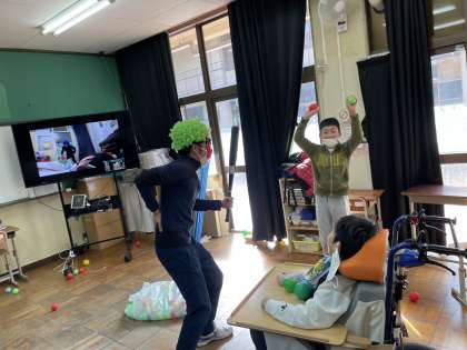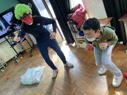悪いもの(鬼)を追い払い,良いもの(福)を呼び込むために,豆まきをします。6年生は,鬼をボールで退治しました!怖がったり,喜んだり,たくさんの表情が見られました!