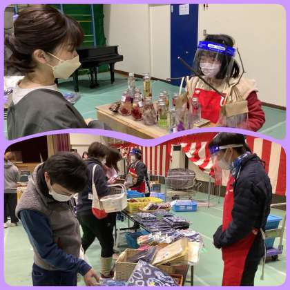 4月からのワークスタディで中学部,高等部の生徒が一生懸命作った製品を教職員向けに販売しました。環境園芸,木工・メンテナンス,陶芸,染織デザインの製品を各ブースに分かれて販売しました。
