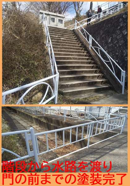 昨年度に引き続き,本年度も本校がお世話になりました。3月6日の日曜日,校舎から農園・プールに下りる階段の手すりをきれいに塗装し直していただきました。