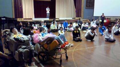 学校祭を来週に控えて,各学部・学年の取組にも熱が入ってきました。写真は小学部3年生「わたしたちHGS48」,高等部2年「17歳の私・ぼく−これが青春だ」,高等部3年「東総合支援学校〜卒業〜」リハーサルの一コマです。
