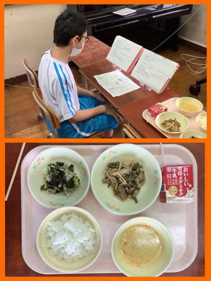 担当の中学部の生徒は,本日の給食のメニュー(ごはん,牛乳,チンジャオロース,中華風あえもの,中華コーンスープ)を紹介したり,クイズを出したり,しっかりと進行してくれました。