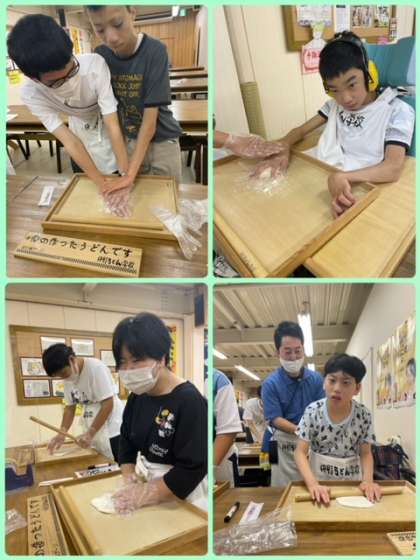 1.小麦粉に食塩水を少しずつ入れてて混ぜます。