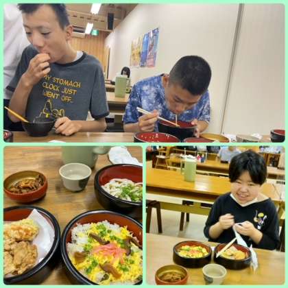 体験の後は美味しいうどんやちらし寿司等いただきました!