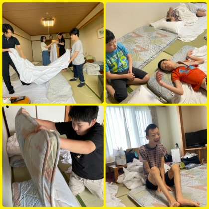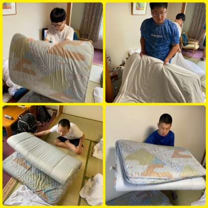布団を片付けて帰る用意です。最後まで楽しみます!