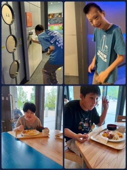 活動の後は修学旅行最後の食事です。オムライスにうどん!