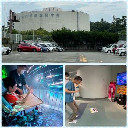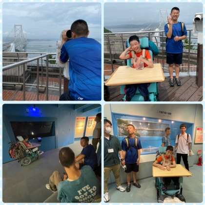 大鳴門大橋に着く頃、雨が降っていたので『渦の道』に行く予定でしたが急遽大鳴門橋架橋記念館 エディに行き先を変更しました。活動中に雨もあがり屋上のデッキから大鳴門大橋や船を見ることができましま。また、阿波踊り体験や音で光る部屋などで楽しく活動しました。