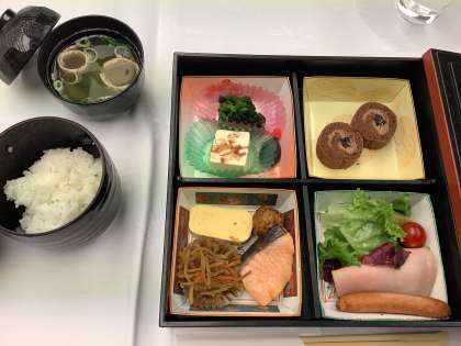 朝ご飯もたくさんのメニューでデザート付き。朝から元気モリモリです!