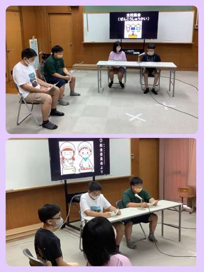 中学部の生徒会による、前期前半最終日の全校集会が行われました。