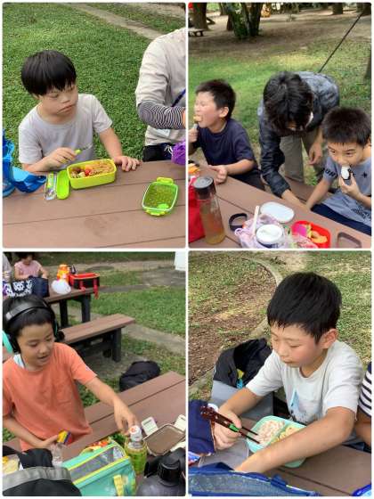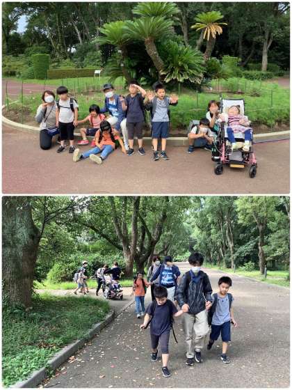初めての校外学習に行ってきました!並んで歩く姿はさすが2年生です。大きな植物や広い芝生に大はしゃぎ♪追いかけっこをしたり、スイッチを押して写真を撮ったりもしましたよ。たくさん遊んだ後は、お弁当をおいしくいただきました。